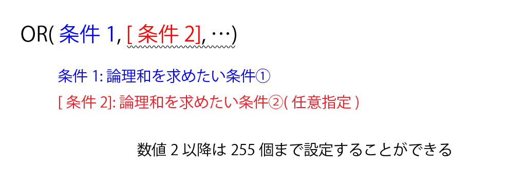 OR関数の引数は条件を入れるだけなので、難しいことはありません。